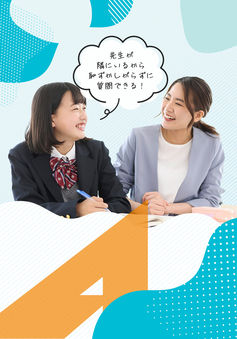「教える時間」と「演習の時間」をしっかり分けることで、一人ひとりの理解度に合わせた効率的な学習を実現します。わからないまま進むことがないよう、常に先生がそばでサポートします。