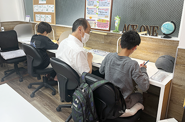 エース・ワンでは、原則として先生1人に対して生徒2人の個別指導を行っています。
