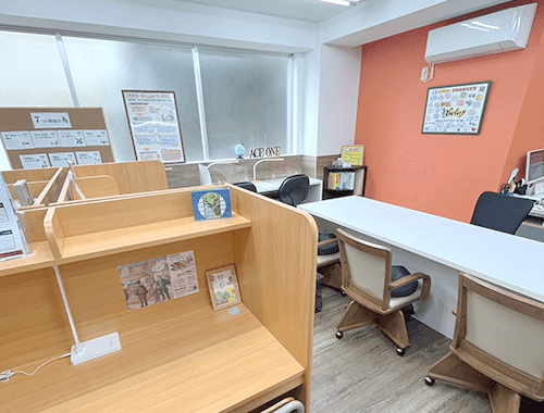 教室は少人数制で、集中しやすい静かな環境の中、主に1対2のスタイルで授業を行っています。